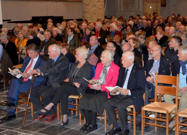 Zo vol was het in de Gertrudis, waar het buitengewoon goed toeven was. Frank Dijkstra (zÍe inzet) die de avond zo lenig presenteerde. Hulde! Foto's Koos Haantjes.