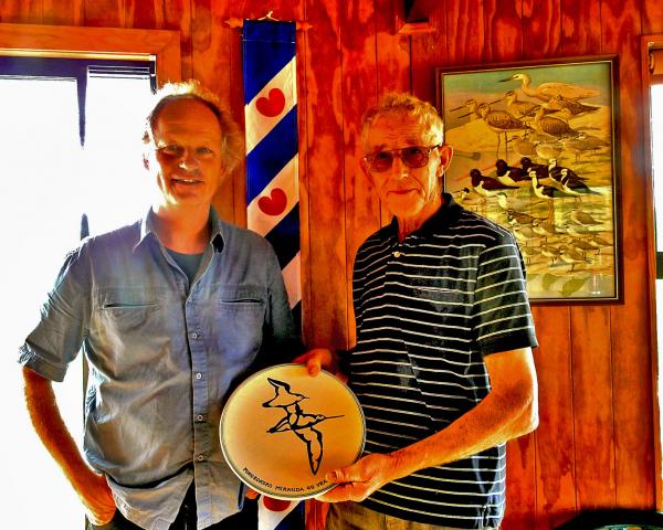Op 29 november jongstleden werd deze foto gemaakt in Miranda, Nieuw Zeeland. Theunis Piersma en Petra de Goeij hadden een Workums cadeautje meegenomen voor het wadvogel-bezoekerscentrum Pukurokoro-Mirondq ter ere van zijn 40-jarig bestaan. Het door pottenbakkerij Kunst speciaal daarvoor gemaakte bord werd direct bewonderd door Joop de Jong, die 40 jaar geleden vanuit Sibrandabuorren als jonge boer naar de in de buurt van Mironda gelegen