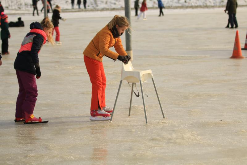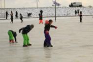 Jan Ykema en Sietse Heslinga geven schaatsles in Workum 7-1-2009