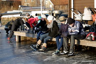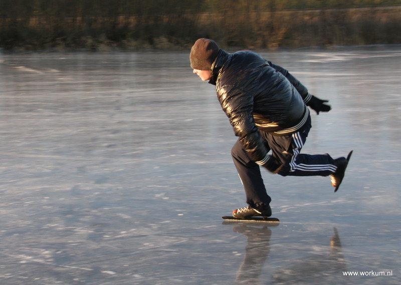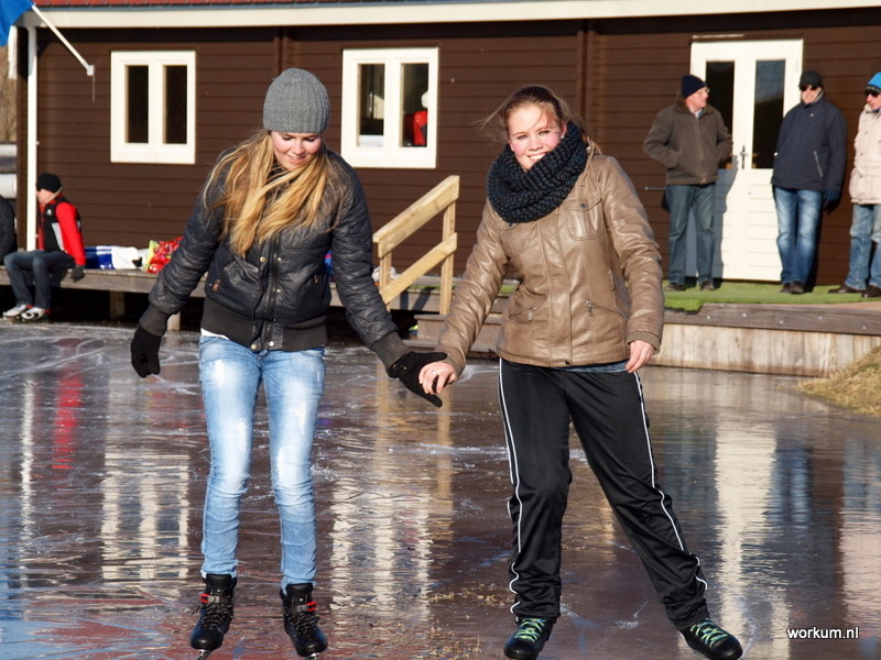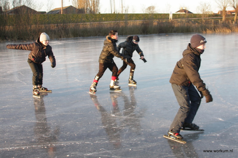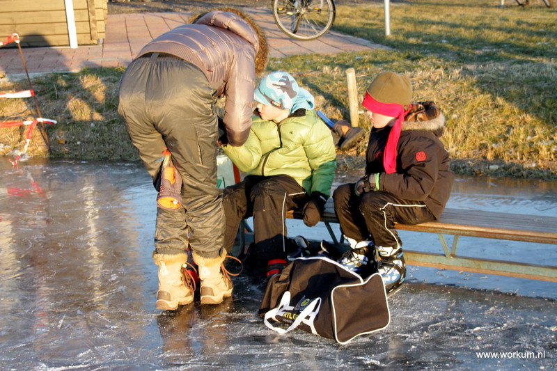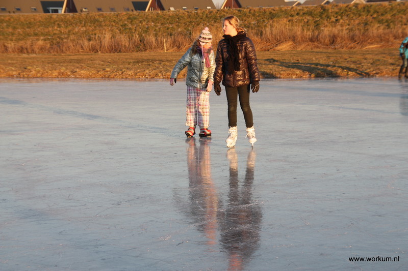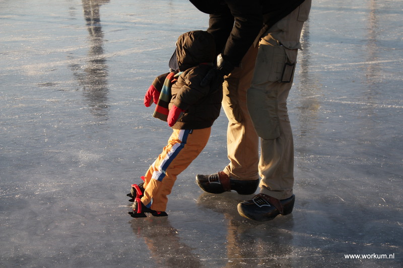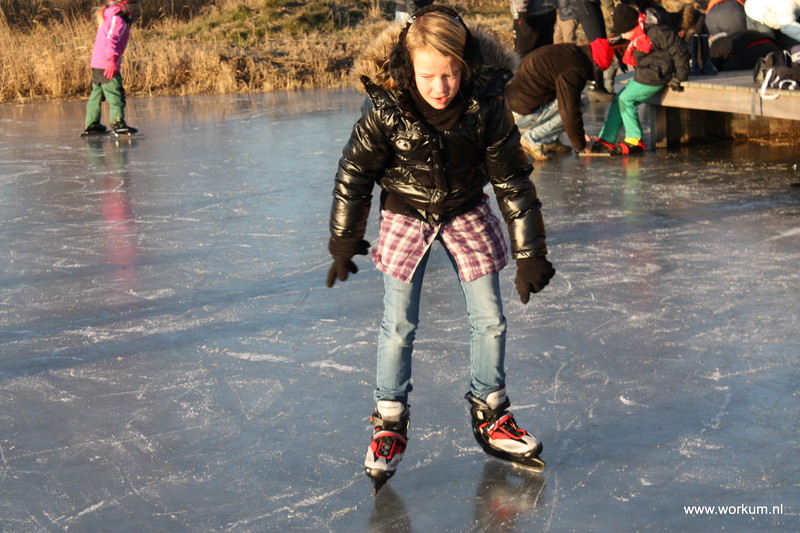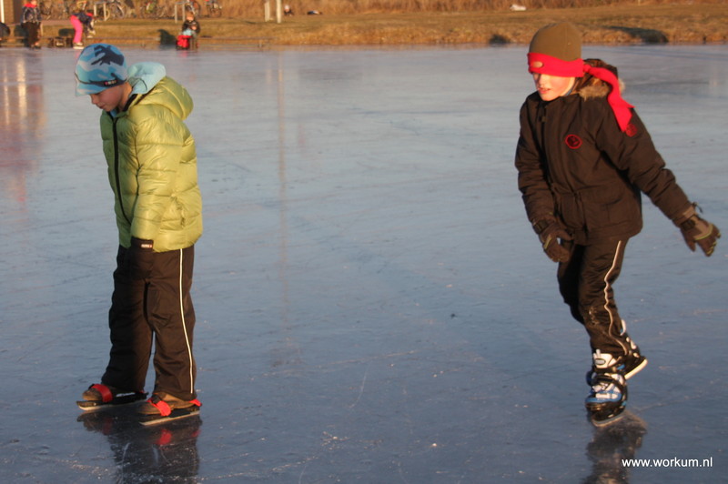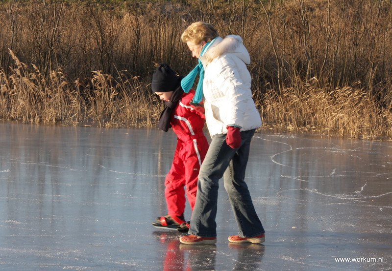 Jan Ykema en Sietse Heslinga geven schaatsles in Workum 7-1-2009