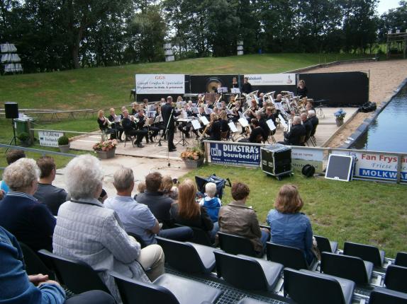 Het openluchtfestival van muziekvereniging Studio was zaterdag 9 juli een succes. Onder de stralende zon konden de bezoekers genieten van optreden van Studio en verschillende andere korpsen. ´s Ochtends zag het er nog niet naar uit dat het een stralende middag zou worden. Regenbuien teisterden het evenemententerrein, waar in het zandbed van het fierljepterrein een podium voor de korpsen werd gebouwd. De weersvoorspellingen kwamen echter uit en ´s middags brak de zon door. Na de optredens van de verschillende korpsen en de drumband van Makkum was er een grote barbecue. Ook konden belangstellenden nog meedoen aan een demonstratie fierljeppen.