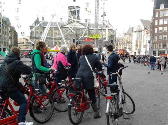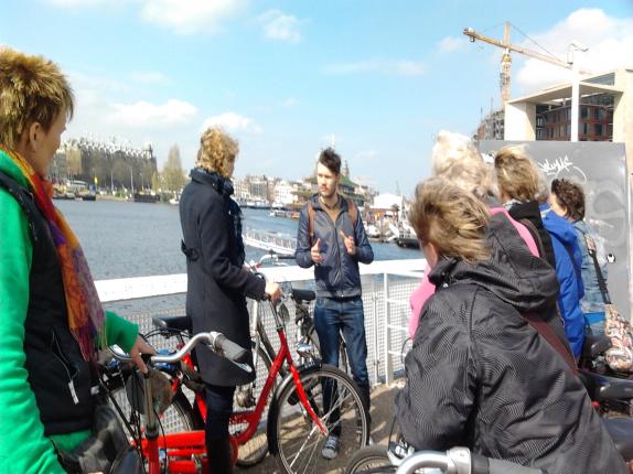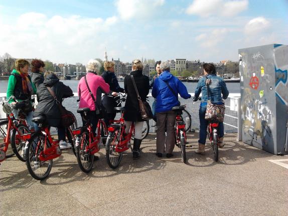 Negen Heidenskipster vrouwen togen woensdag 25 april naar Amsterdam voor het uitje van 'Froulju fan de pôle'. Eerst werd de stad op de fiets verkend, onder leiding van een gids. Van de Zeedijk via de Wallen naar de PC Hooftstraat en het Vondelpark ging het weer terug naar het Waterlooplein. Onderweg vertelde de gids over de geschiedenis van de hoofdstad, terwijl de Heidenskipster vrouwen hun weg zochten door het drukke verkeer. 's Middags kregen ze een kijkje achter de schermen van het Muziektheater, beter bekend als de Stopera. Hier werd net het decor van een opera verwisseld voor dat van de balletvoorstelling van die avond. Het is een gigantisch bedrijf waar maar liefst 700 mensen werkzaam zijn, van dansers tot pruikenmakers. Een leerzame en zeer geslaagde dag.