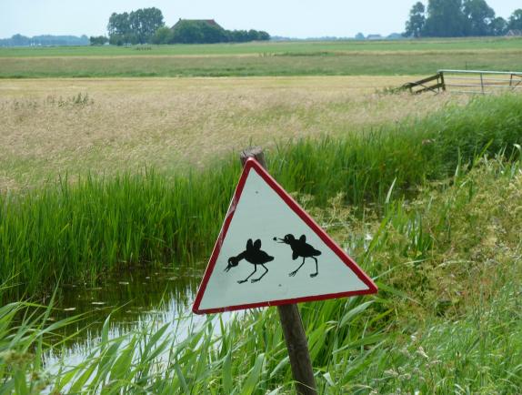 Aan het begin van de Urseladyk staat een verkeersbord dat waarschuwt voor eventueel overstekende weidevogels. Er dient dus vaart te worden geminderd!!
