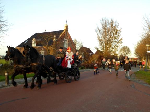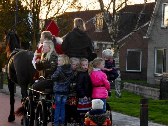Sinterklaas is op 4 december met 3 van zijn jonge Pieten naar It Heidenskip gekomen. Sinterklaas werd opgewacht door heel veel kinderen, heiten en memmen en vooral beppen! Met het zingen van Sinterklaasliedjes, onder begeleiding van het jeugdorkest van Studio, werd op zijn aankomst gewacht. Zou Sinterklaas echt wel komen? De kinderen waren heel blij toen ze in de verte iets zagen komen. Het bleken Pieten achterop op een trike te zijn! Maar waar was Sinterklaas dan wel? Voor hem was er namelijk eerst geen plek en dus maakte de trike meteen rechtsomkeer. Sinterklaas kwam dan ook al heel gauw en toen was het natuurlijk weer Sinterklaasliedjes zingen! De Pieten deelden lekkers uit! De voorzitter van het dorp sprak enkele mooie woorden ter begroeting en nodigde Sint en zijn Pieten uit om een rondtoer door het dorp te maken in een open calèche met 2 ingespannen Friezen. De jonge Pieten moesten natuurlijk al héél snel plaatsmaken voor de kinderen! Na terugkomst was er een feestelijke ontvangst van het gezelschap in de grote zaal van It Swaeigat. Sinterklaas nam de kinderen, die dat graag wilden én durfden(!) op schoot en ze mochten hem vragen stellen, een liedje zingen of wat ze maar wilden. En toen niemand van de kinderen meer wilde, zwaaiden ze Sinterklaas met `Dag Sinterklaasje….dáág, dáág..` uit en daarna was er voor hen nog een mooi feest met limonade, pepernoten en koek!
