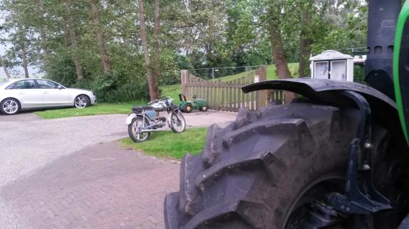 Maandagavond, fierljeptraining. Iedere ljepper heeft zo zijn/haar eigen vervoermiddel om naar de fierljepschans te komen.