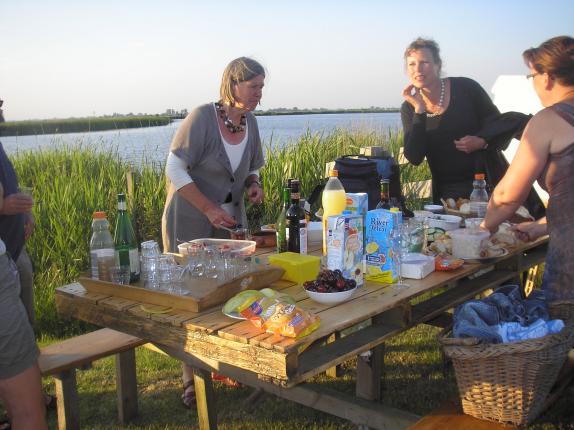 Het weer was een schril contrast met de week ervoor. Toen zaten de 'Talinten yn 'e tún' nog met een winterjas aan. Afgelopen zondagavond evalueerden ze de tuindag aan de boorden van het Zandmeer. De organisatie kan terugkijken op een geslaagde dag. Op zondagavond 27 juni werd in de tuin van Hein en Peek Bonebakker nog even nagekaart, onder het genot van een hapje en een drankje. Ook werd het schilderij dat bij Marqueritte Clasquin is gemaakt, onthuld.