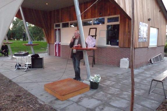 Met het openen van de deur van de nieuwe kiosk heeft wethouder Sjors Eiling vrijdagavond het project 'Kearn fan it doarp' officieel afgerond. Uit de kiosk kwamen de kinderen van It Heidenskip: de kearn fan it doarp.