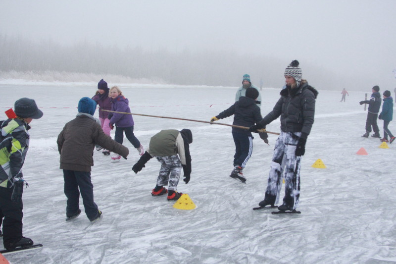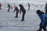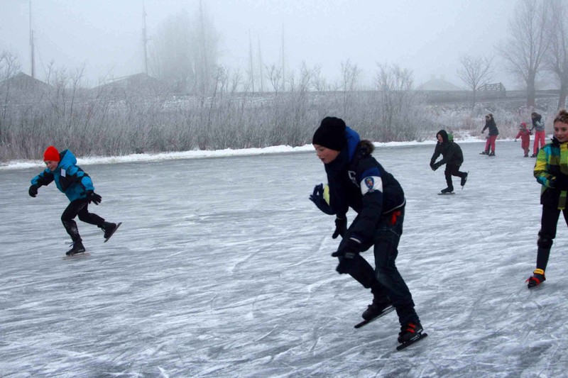 Jan Ykema en Sietse Heslinga geven schaatsles in Workum 7-1-2009