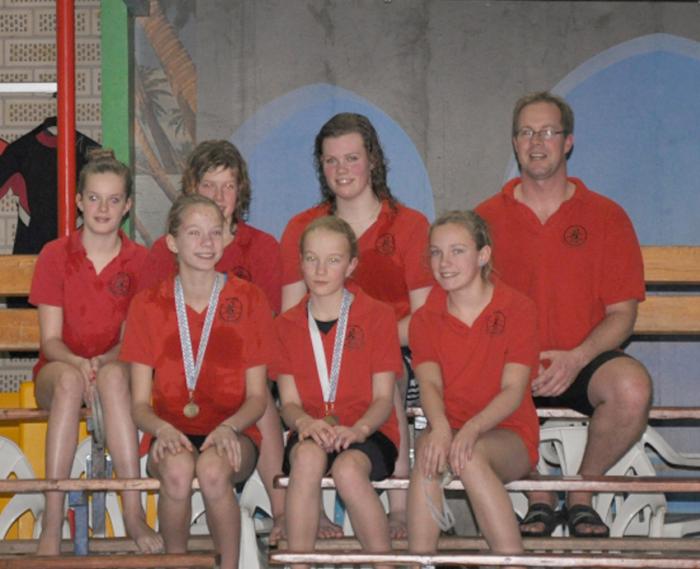 De zo succesvolle deelnemers van zwemvereniging Workum aan de Friese kampioenschappen. Boven van links naar rechts Jildou Speerstra, Heline Koning, Femke van der Gaast en Johan Dijkstra. Onder in dezelfde volgorde Anne Tuinstra, Joyce Kuipers en Iza van Veen.